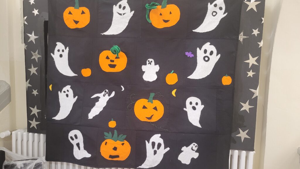 In den fünften Klassen, oh wie fein,bastelten wir Kürbisse, groß und klein.mit Frau Lahann, so kreativ und heiter,entstanden Gespenster, die fliegen weiter. Die Fenster geschmückt, die Lichter erstrahlen,Halloween naht, wir können es malen!mit Lachen und Freude, das Fest wird ein Hit,in unseren Klassen, da steckt viel Geschick!