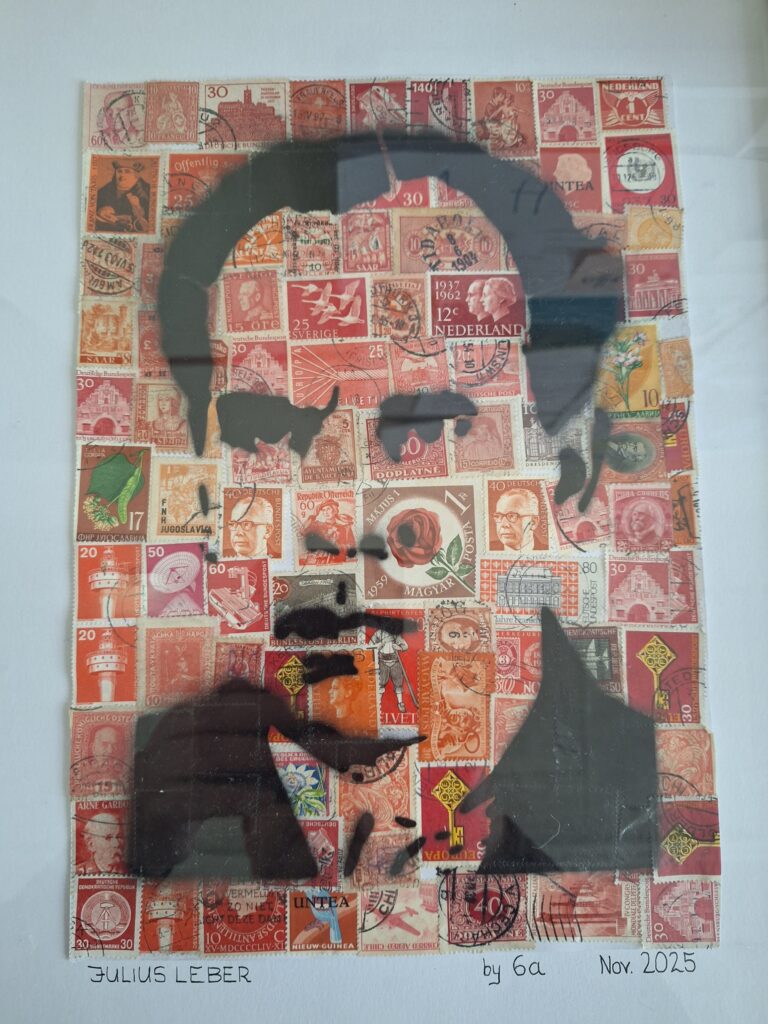 Sein Leben und sein Einsatz für die Demokratie in Deutschland waren für uns alle beispielhaft und so wurde ein Thema für den Kunstunterricht daraus: Eine Graffiti-Collage mit dem Portrait Julius Lebers. Ihr könnt einige ausgestellte Bilder im Foyer unserer Schule bewundern.